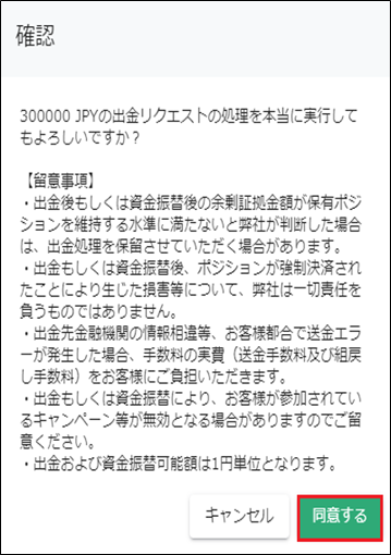 ※出金申請の送信後、弊社にて申請内容を確認した上で、取引口座から出金額の差引処理を行います。