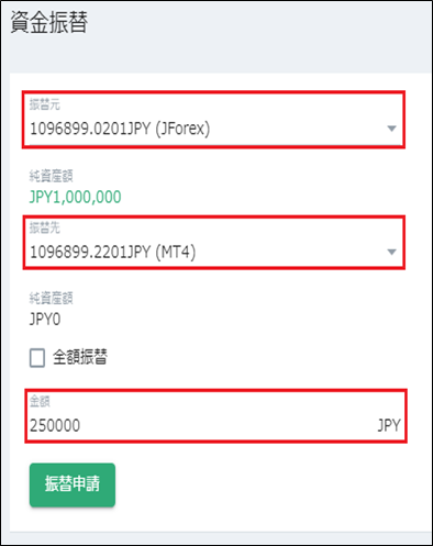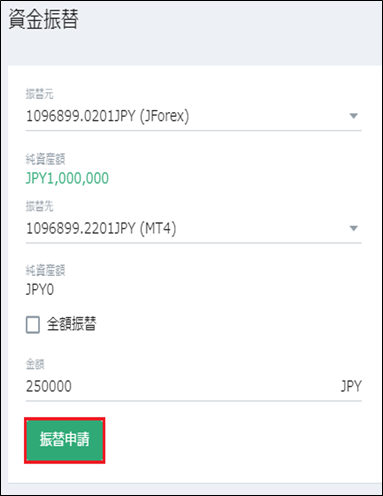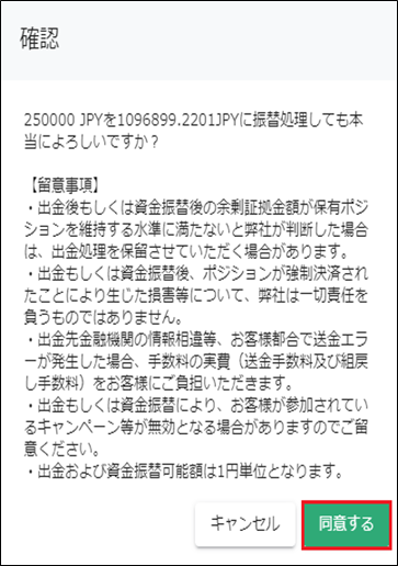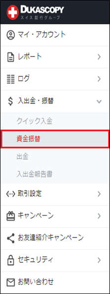 取引口座間の資金振替は、お客様マイページの「資金振替」画面より行うことができます。