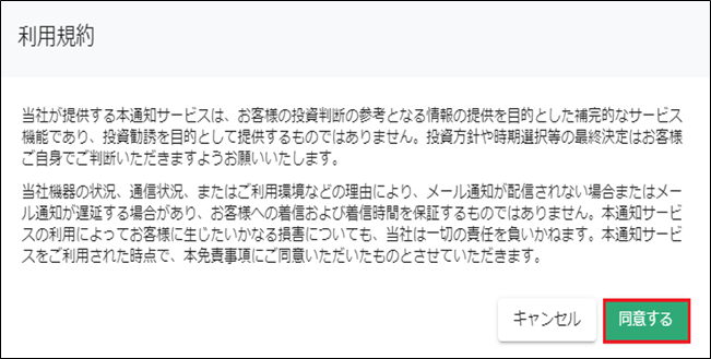 免責事項を確認のうえ、「同意する」ボタンを押します。
