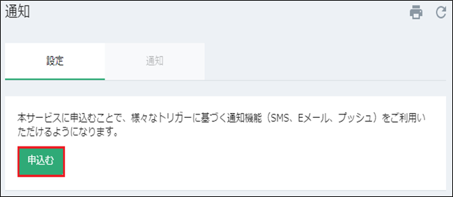 「設定」タブで、「申込む」ボタンを押します。
