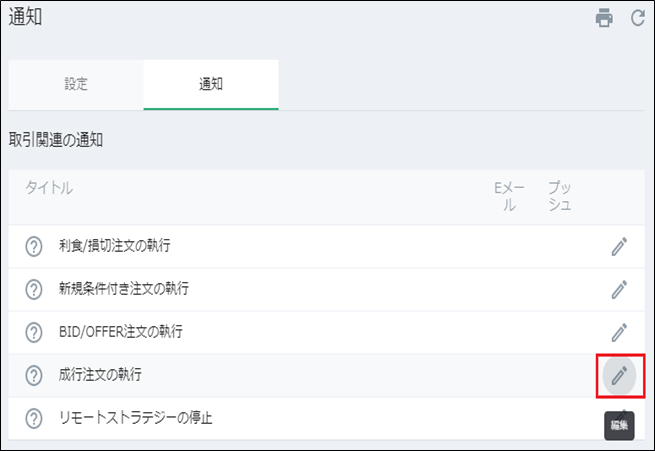 配信希望の通知を選択し、編集ボタンを押します。