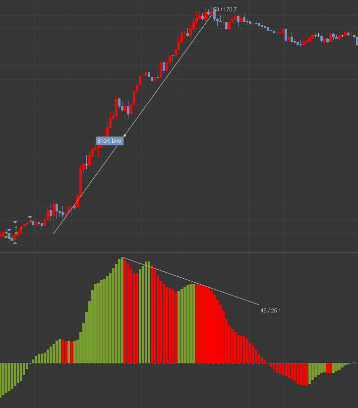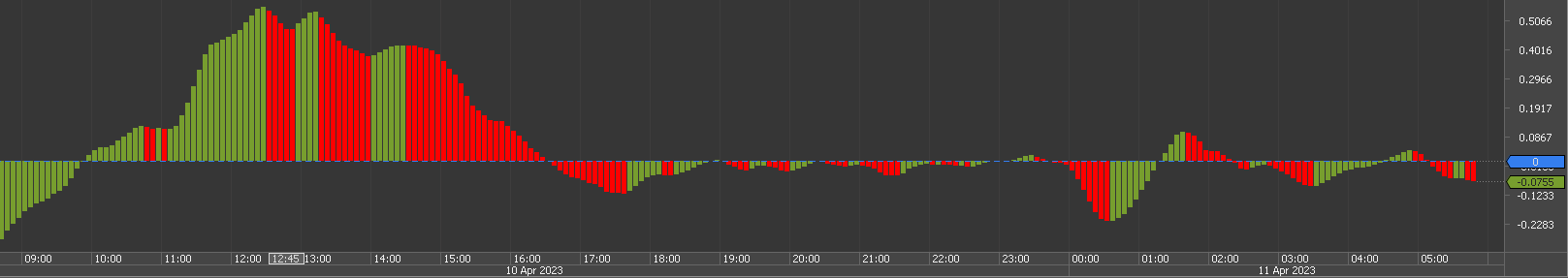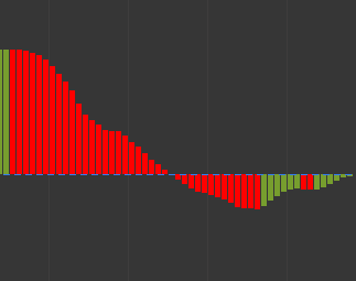 短期移動平均が長期移動平均よりも低い場合、ゼロライン下に表示されます。
