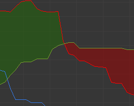 先行スパン1と2が交差して、上下が入れ替わる地点が見られます。