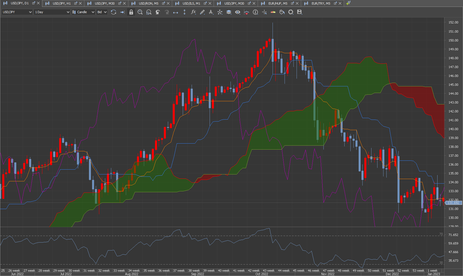一般的に「基準線」「転換線」「雲」の3つに注目とされています。