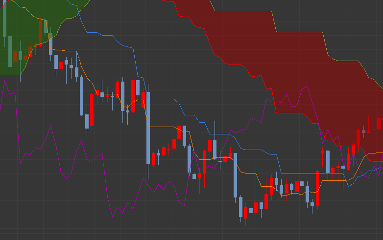 過去52本分の最高値と最安値の平均をローソク足26本分先行させて表示